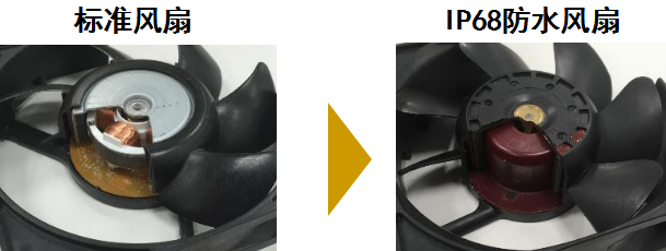 山洋防水IP68散熱風(fēng)扇的處理工藝為風(fēng)機(jī)的導(dǎo)電部分采用灌膠處理,以完全保護(hù)線圈及電路板,使風(fēng)扇即使浸泡在水里,風(fēng)扇的電路部分也不會(huì)進(jìn)水。