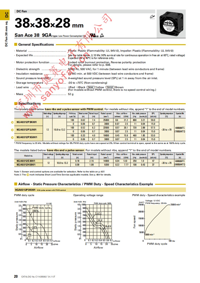 SanAce山洋低功耗軸流風扇 9GA0312P3K001 產(chǎn)品詳情說明: