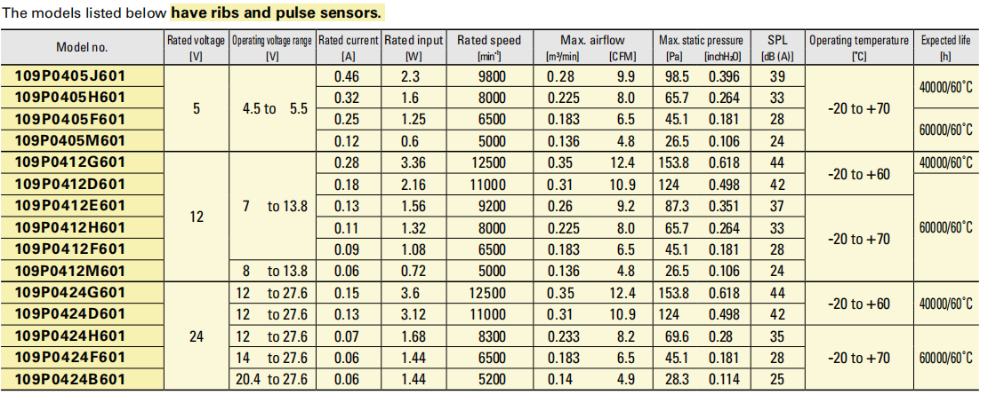 sanyo軸流風(fēng)扇 40 9P系列: